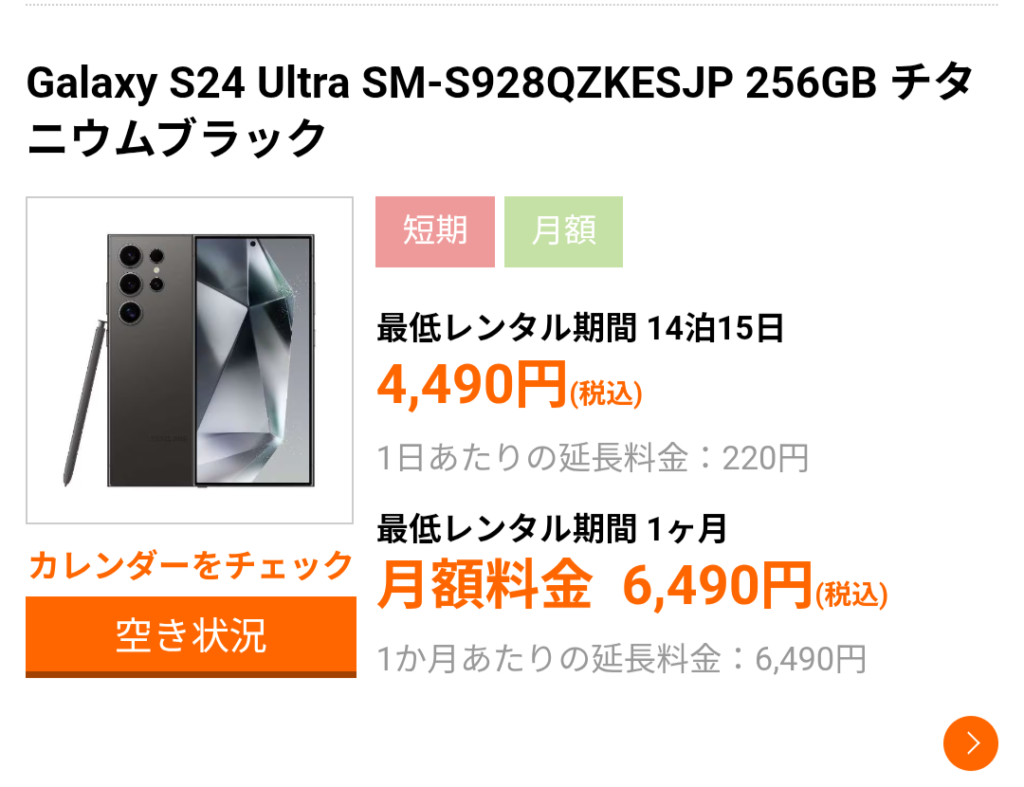 比較表をみるとわかるように、数日程度の短期利用よりも、ゲオやレンティオの14泊15日プランが最も料金が安いです。最新機種を試すならレンティオ、S24Ultraならゲオを選びましょう。